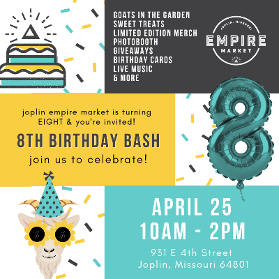 The Empire Market is located at 931 E. 4th Street in Joplin, Missouri. It is open from 10am-2pm every Saturday. We have a convenient parking located in the lot directly east of the Market.