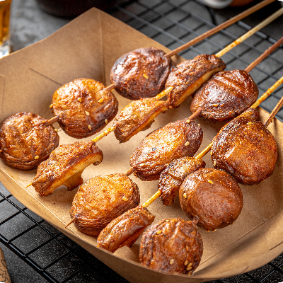 Fried Beef Meatball Skewer