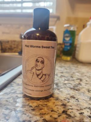 We sell vermicomposting (worm compost) and vermicomposting tea (Mac's Worm Sweet Tea). This is a natural liquid plant food that is completely safe for children and pets and will not contaminate the water system. Worm tea is safe for all plants, flowers, vegetables, seedlings, roses, trees and provides a shield against harmful garden pests. Worm tea is good for fruiting and flowering plants. The worm tea will decompose thatch into a rich humus that will encourage the growth of a greener lawn. Worm tea also breaks down grass clippings in the same manner so they actually become beneficial to the growth.