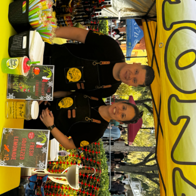 Pop up Canopy and trailered fresh squeezed lemonade with an assortment of flavors.