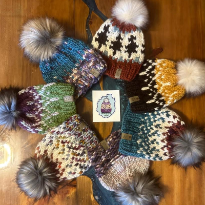 Hand knit hats in merino wool as well as other fiber options. Custom orders welcome!