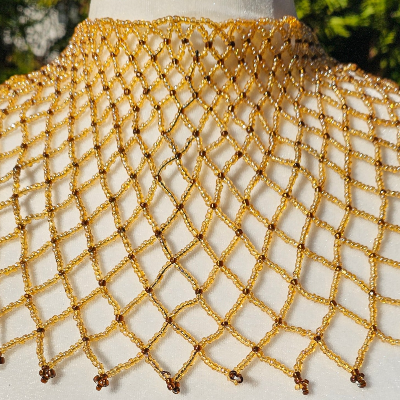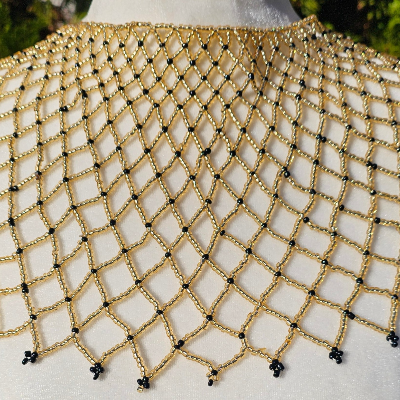 High Neck Gold & Black Beaded Collar Necklace