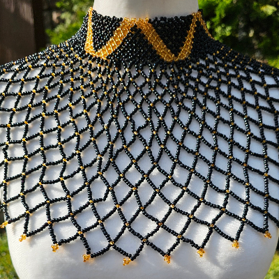 Black & Gold Beaded Collar Necklace