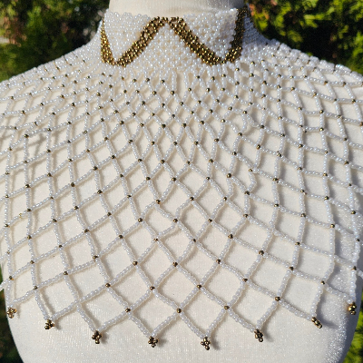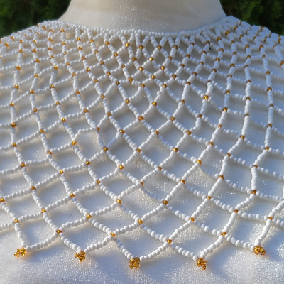 High Neck White & Gold Beaded Collar Necklace