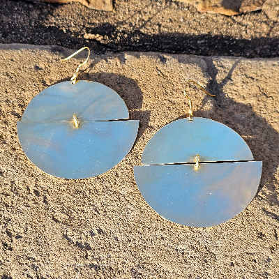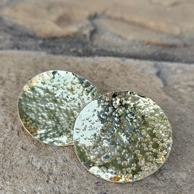 Large Hammered Disc Brass Earrings