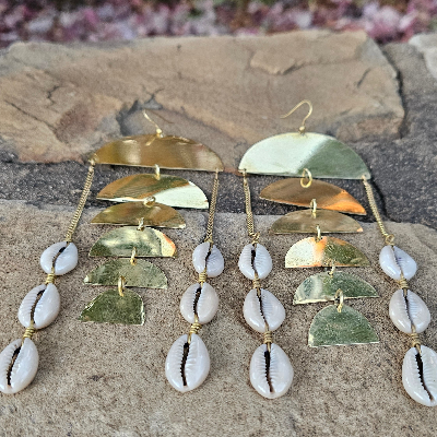 Scales and Cowrie Shells Brass Earrings
