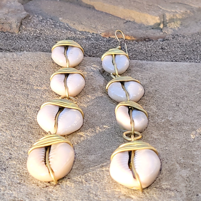 Shoulder Drape Cowrie Shell Earrings