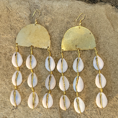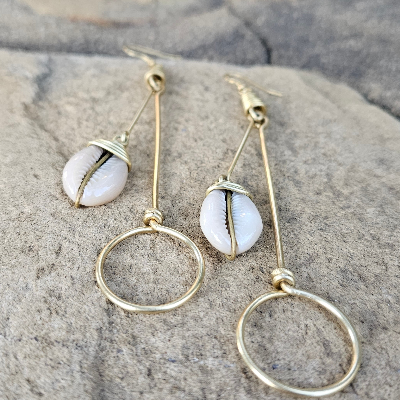 The Pendulum Cowrie Shell and Brass Earrings