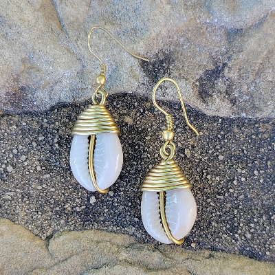 Single Cowrie Shell Drop Earrings