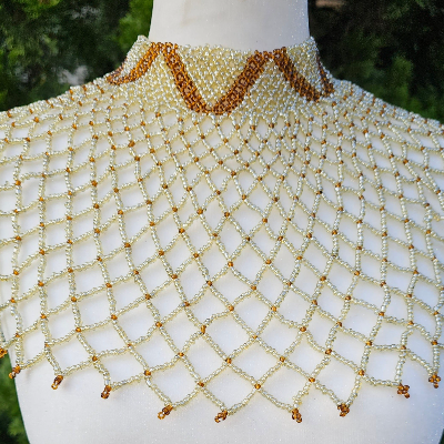 White & Light Gold Beaded Collar Necklace
