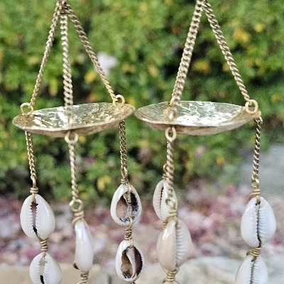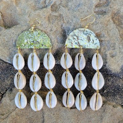 Hammered Cowrie Shell Curtain Earrings