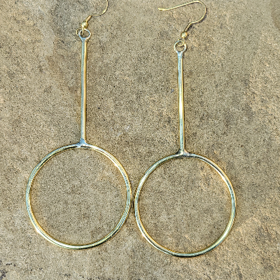 Large Linear Hoop Brass Earrings