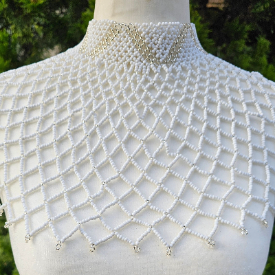 High Neck White & Clear Beaded Collar Necklace