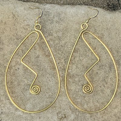 Large Curved Design Brass Earrings