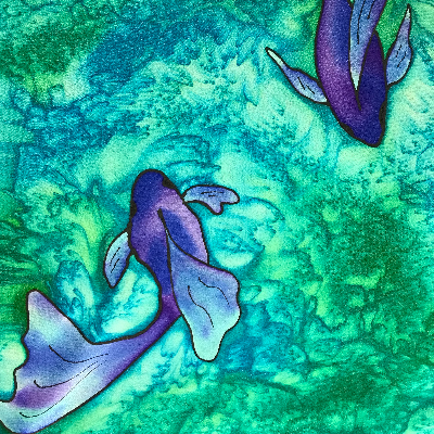 I paint in a variety of styles - most of which include using natural resources such as the sun, sea and sand to achieve desired results and heat-set them into the silk. I love color and mix my dyes from primaries with the goal of achieving the colors of nature and capturing them on a silk canvas.