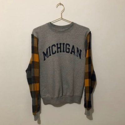 U of M Crewneck with Flannel Sleeves