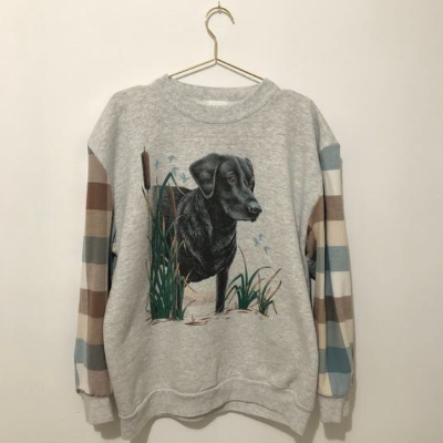 Vintage Graphic Crewneck with Flannel Sleeves