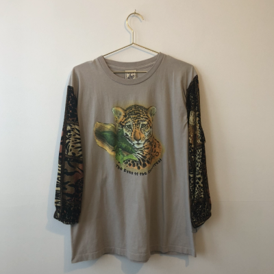 Graphic T-Shirt with Animal Print Sleeves