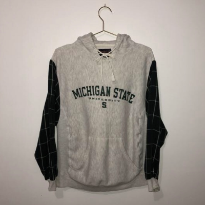 MSU Hoodie with Flannel Sleeves