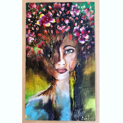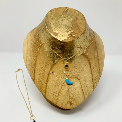 Original Art on recycled wood and handmade 18k gold filled jewelry