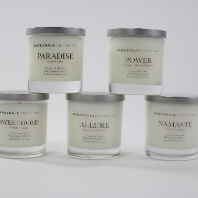 Barksdale Interiors creates a line of hand poured coconut-soy wax candles that gives off great scent and burn excellent. Also hand produced, we offer home sprays that may be used on furnishings, linens, and fabric throughout the home.