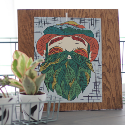 She uses inks, watercolors, and acrylics for her original artwork and takes those designs and put them on a variety of products for gift, home, and baby. Her work is inspired by the nature around her and her imagination! It's whimsical, lovable, and beautiful.
