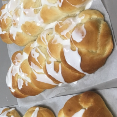 Thistle Hill started out with Karen and Kristin (mother daughter team) as licensed bakers. In 2017, we added a food cart and Kristin’s whole family to bring hot foods, baked goods and homemade drinks to the market. For 2019, we plan to just sell our baked things. Some of our baked products include cupcakes, Cardamom Bread, dinner rolls, cookies, muffins, and bars.