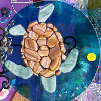 I purchase my glass locally, recycle glass and create new beautiful designs. Each piece is an original. You will find new designs each show as well as past favorites.